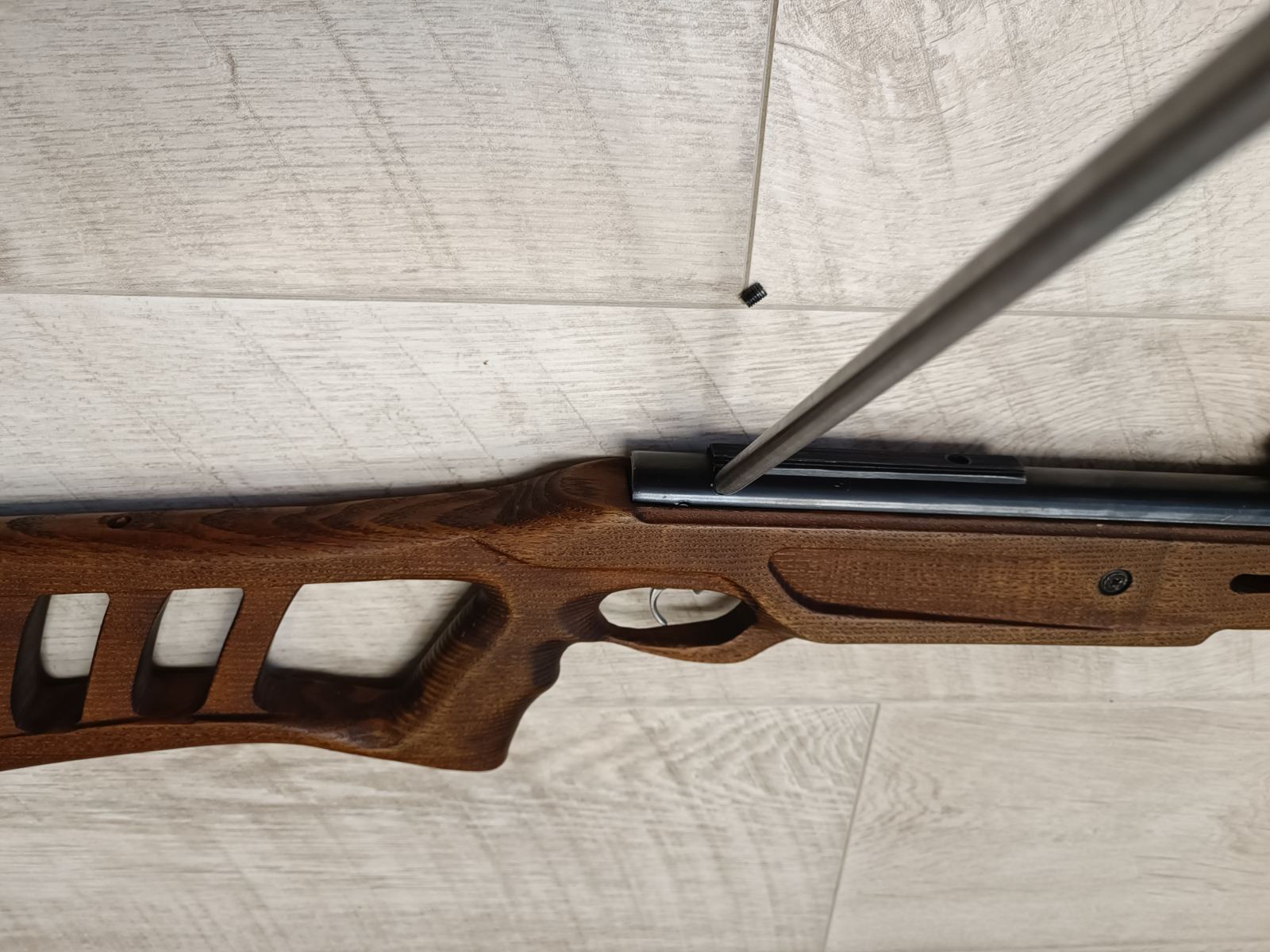 Отдельно расскажу о преимуществах пружины. Пружина полностью разборная и обслуживаемая. Если не поцарапать шток - вечная. Внутри все уплотнители (О-ринги) сменные. Конструкция позволяет менять усилие пружины без разбора винтовки, так сказать "на ходу" без особых усилий и трат по времени. Позволяет регулировать оптимальное усилие под любой выбранный боеприпас, манжету, или, что для меня было важнее, настраивать винтовку на кучность (так как стреляю исключительно стоя с рук) подбирая соотношение мощность/вздрагивание винтовки при выстреле.