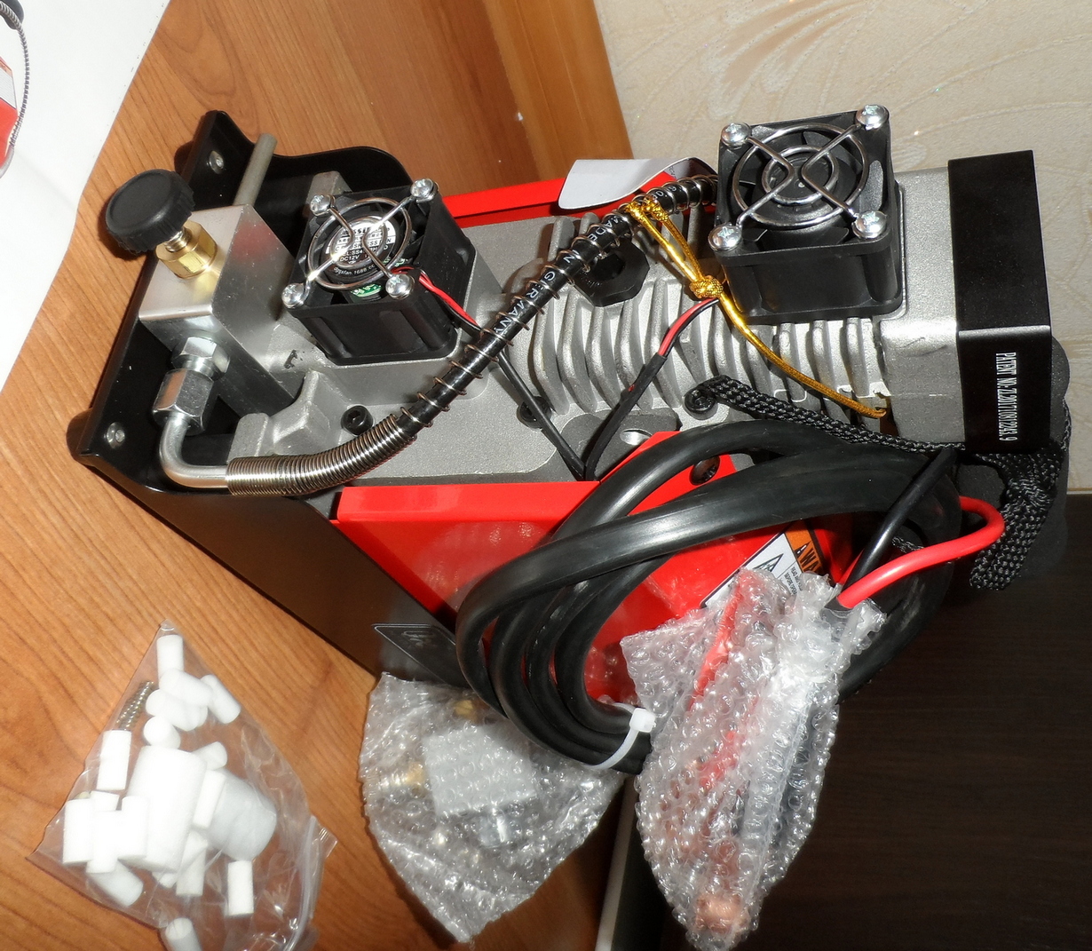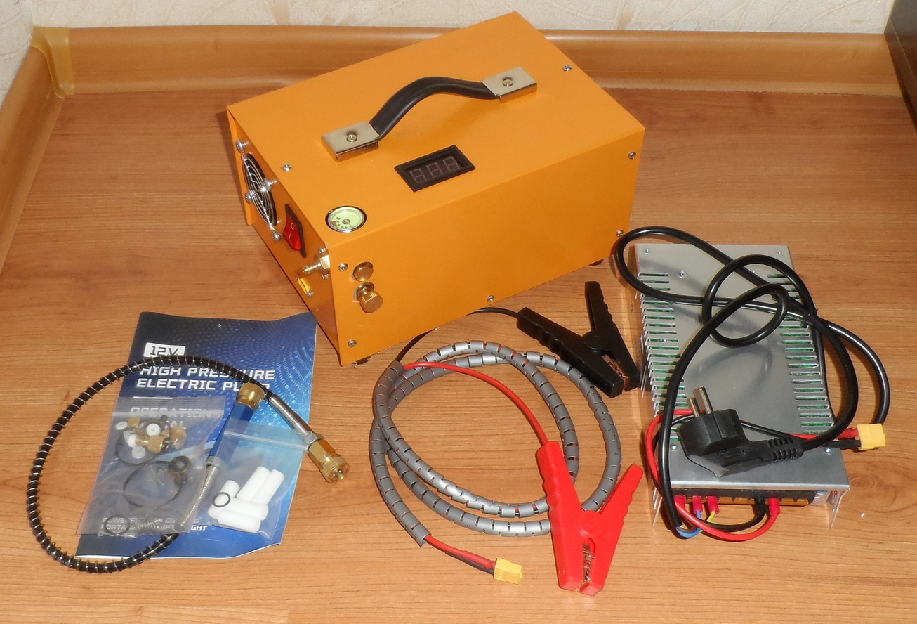 Компрессор ВД 12 в + блок питания на 220 в. Воздушное охлаждение, без масла. Комплект на фото.