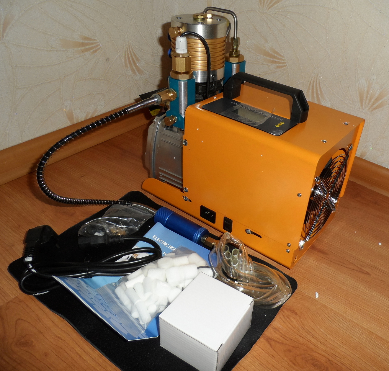 Комплектация: компрессор, погружная водяная помпа, маслоотделитель для шланга ВД, шланг ВД с фостером, манометр, противоскользящий коврик, комплект ЗИП, кабель 220В, руководство на английском.