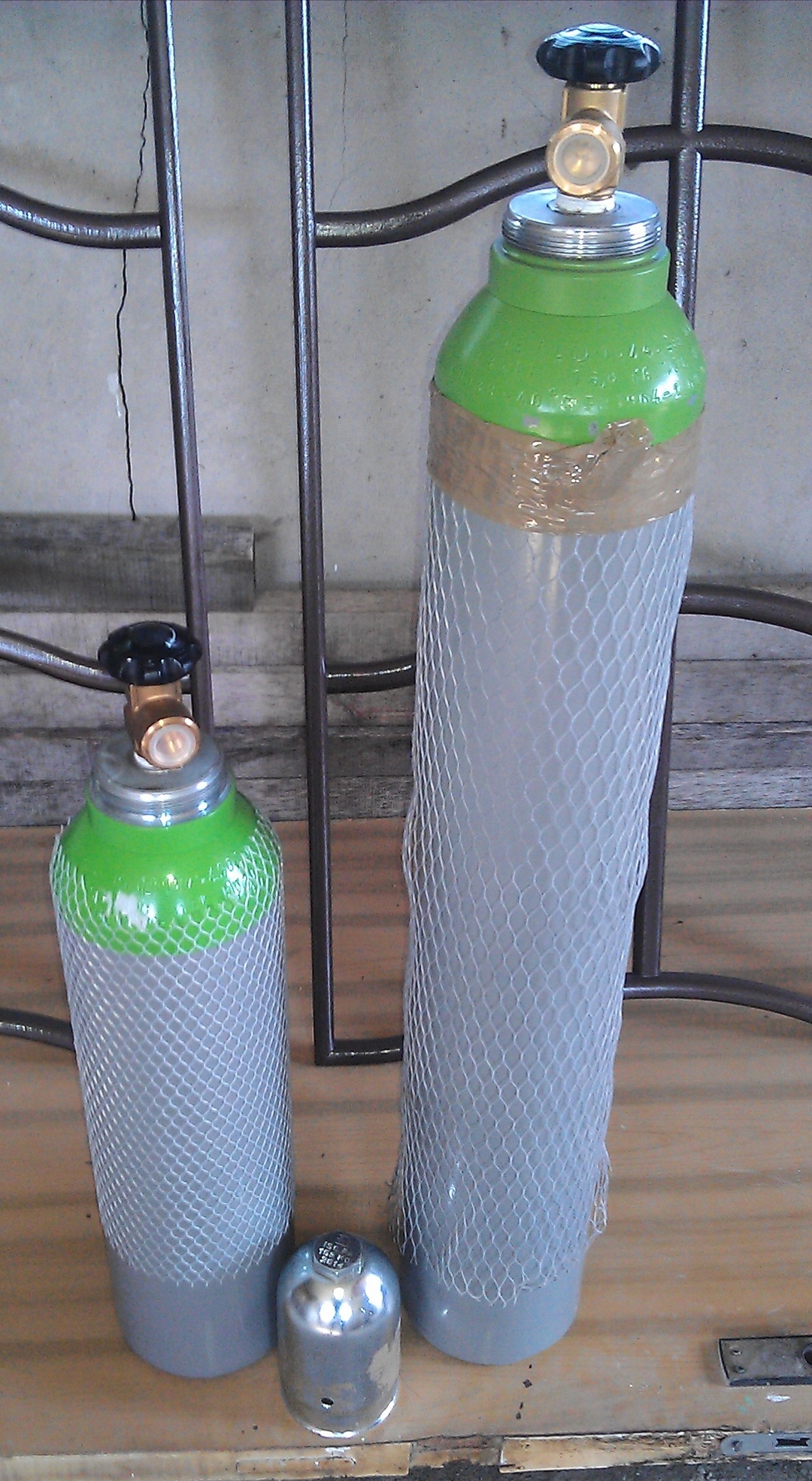 Только конкретно того баллона нет, но суть вопроса ясна. На фото это я посмотрел сейчас, может и зловеще смотрится и скорее всего это был налёт от ржавчины скорее всего, в реальности не так глобально. Не мудрено, что эти баллоны опресовываются в ёмкосте с водой для безопасности, а потом их заправляют тоже в холодной воде, т.к. баллон нагревается сильно, ну это понятно. Вот фото последних привезенных: