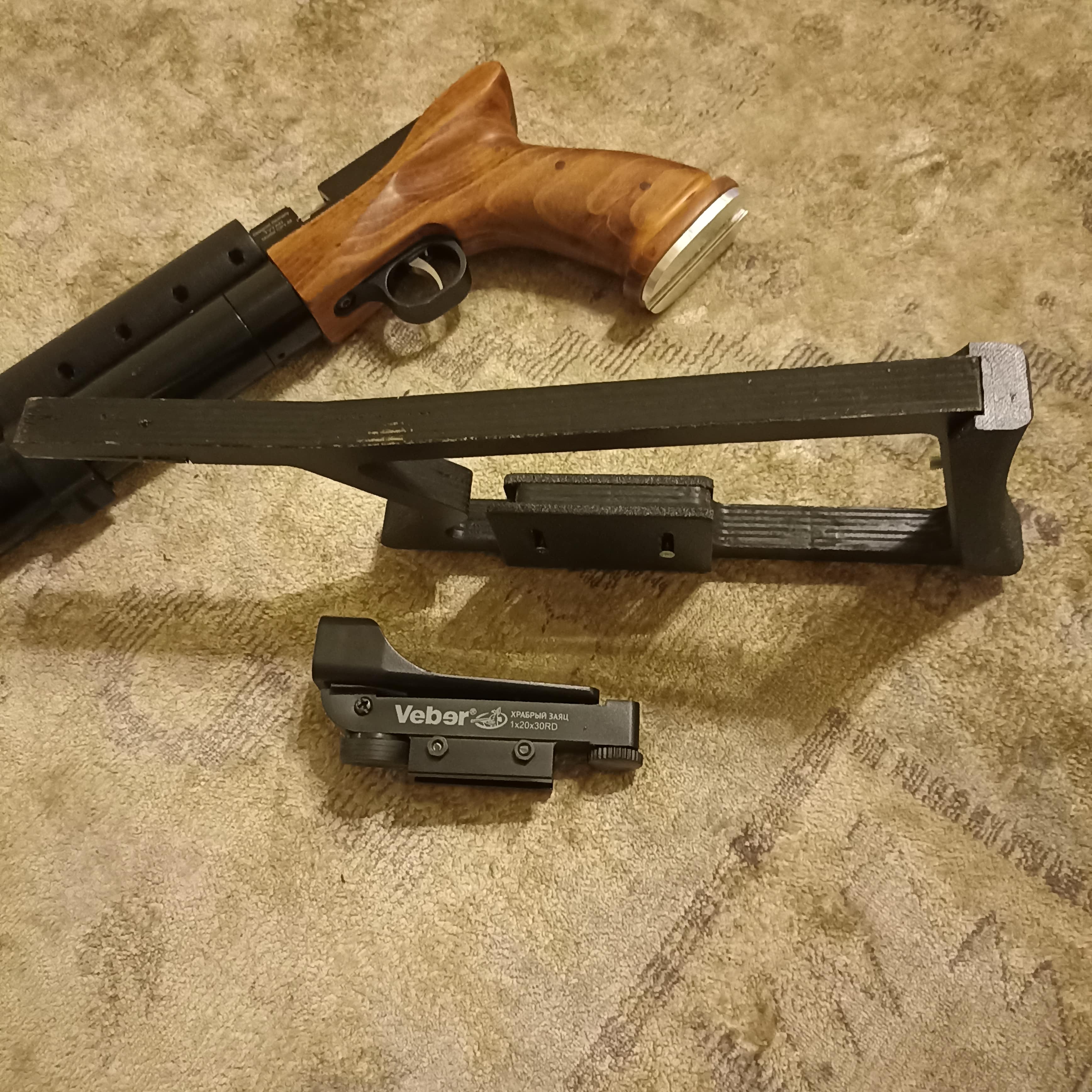 Выставляю на продажу свою игрушку. Появилась новая хотелка, иначе бы даже не создавал тему. 4,5мм, прямоток (170-90, 33-35, 215-225), длина 47 см, быстросьемный костыль. Модер 3д печать глушит почти что в ноль. Насос обычный самый, даже расписывать про него нечего. Качает хорошо - 30 качков и пест снова задут. Настроен под эти пули. Пест с прикладом, насос с зипом, барабанчик на 9 пулек, штуцер, две банки пуль - 800р. Всё это без насоса 700р - отакая значит математика. Как обычно почта, европочта по РБ без проблем.