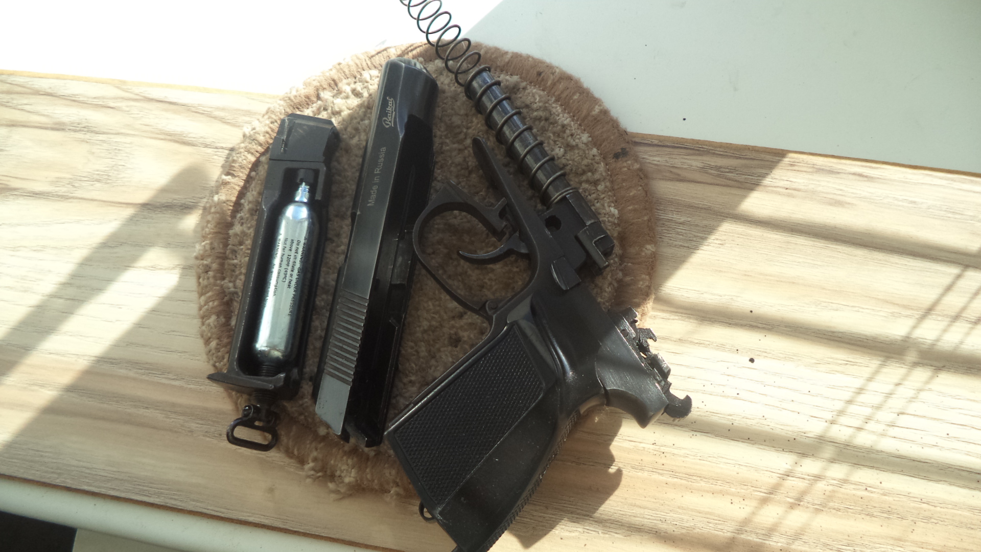 МР654К03. 2002 гв. 300р. Состояние хорошее. Ремкомплект новый. С одного баллона до ста выстрелов. Рукоятка от ПММ , полнотелый бакелит с металлическим корпусом . Ствол длинный, магазин с пазом под зацеп в гайке ствола .Прокладка ствола с завода , зазоров нет.Болт поджима баллона с антабкой. Все вопросы по номеру 80336863322 . Вайбер. Почта.