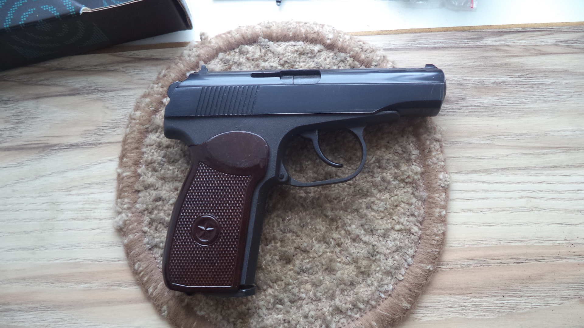 МР654К32. 420р. Установлена бакелитовая рукоятка. В комплекте две пластиковые рукоятки разных цветов. Остальное в стоке с завода. Есть паз под выбрасыватель. Состояние нового. В комплекте коробка, ключ, документы , инструкция , шарики ,баллон , пистолет. Вопросы по номеру 80336863322. Вайбер. Почта.