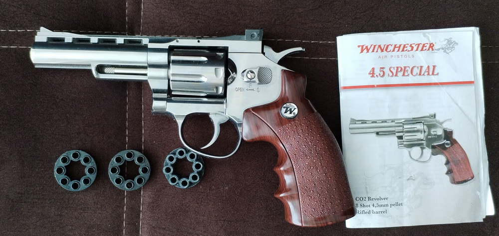 Пневматический револьвер DAISY WINCHESTER 4,5 SPECIAL в отличном состоянии, в комплекте 3 клипа для свинцовых пуль, документы, баллончик. Цена комплекта 370 р. Так же возможен обмен. 80447343135.