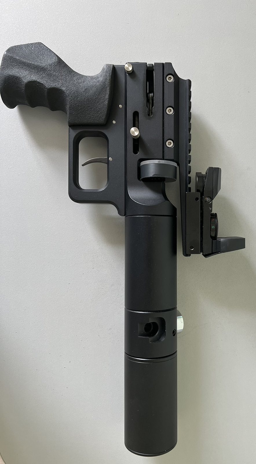Коаксиальный пистолет Waldgun 4.5. Состояние нового изделия. На 3.0 м может 0.68 60 раз дырка в дырку. Реализован АБ. Продаётся в комплекте с прицелом, банкой пуль, штуцером и автоматическим барабанчиком. Сертификаты 3дж и паспорт в наличии.