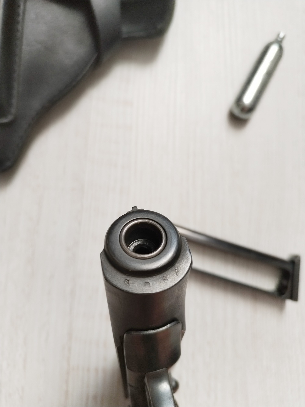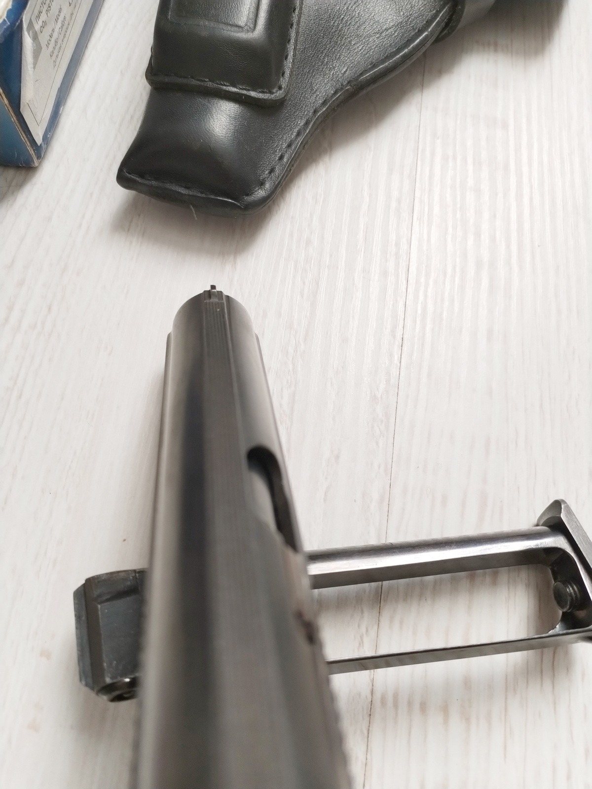 Коллекционный экземпляр без пескоструя, прямая рама с ранней ушастой скобой, затвор четкий по периоду (оригинальный номер на бороде сошлифован заводом-производителем). Зуб отражателя на затворной задержке не срезан, а выпрямлен.