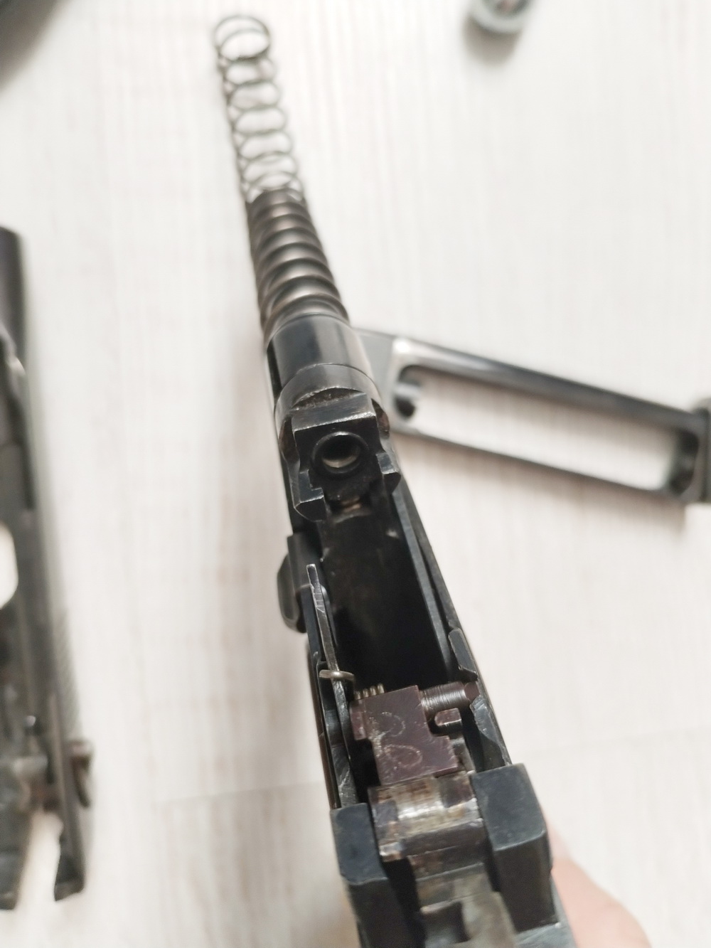 Рукоятка ранняя по периоду, с выемкой под ногу ранней затворной задержки, под баллон не растачивалась в виду ее редкости.