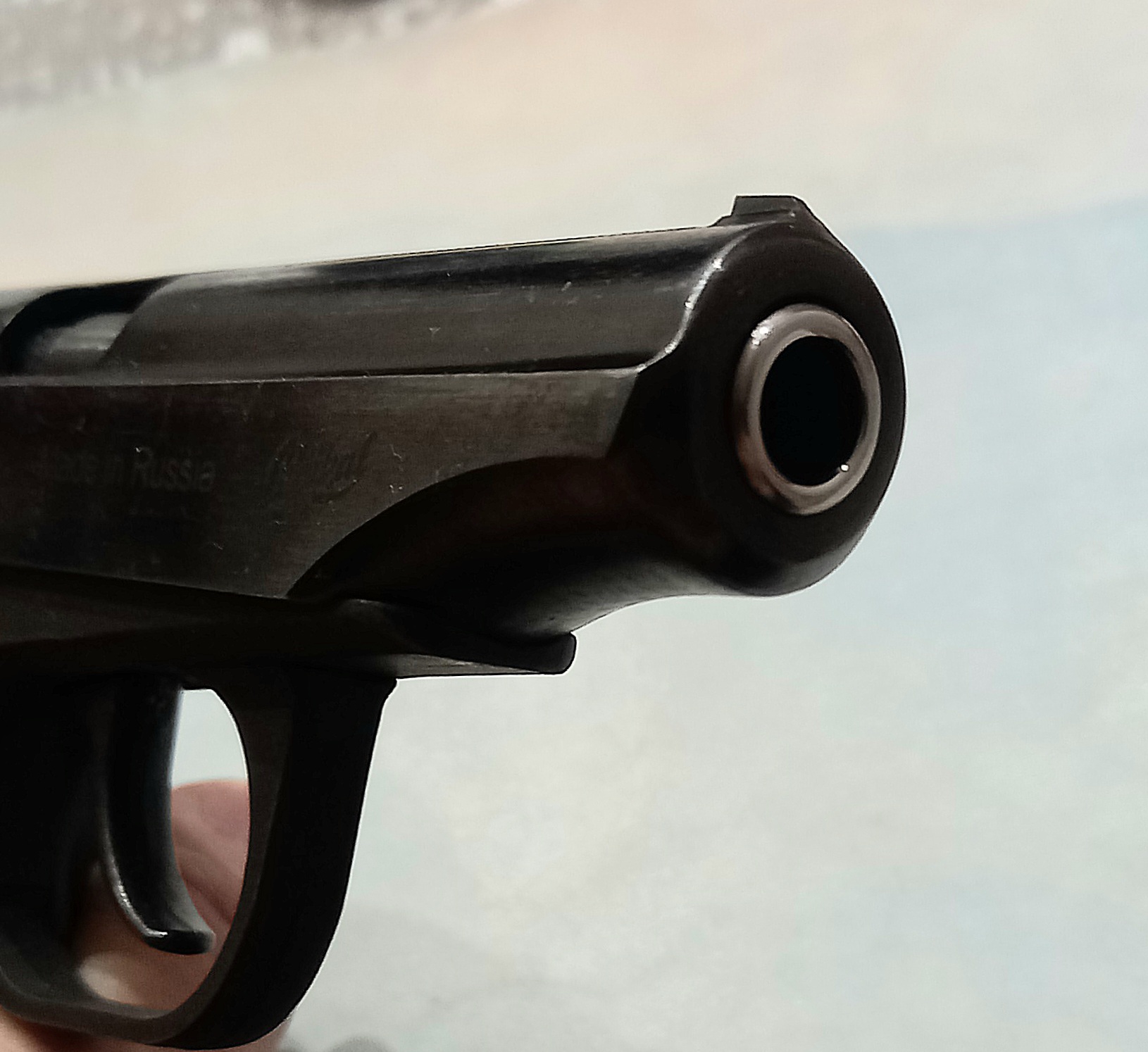 Состояние хорошее ! Не заклацан затвором и тп. Дульный срез смотрится хорошо. Если не ошибаюсь, то в этой модели, проточка ствола со стороны дульного среза, под имитацию 9мм, шла внутрь ствола сначало прямо, а потом под хороший конус. Я видел много, но такие видел не часто :co_ol: