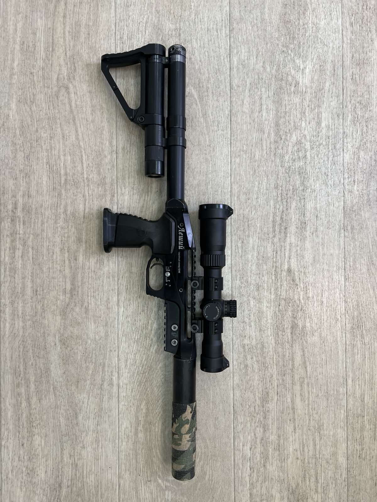 Состояние хорошее, рабочее. Имеются жизненные потертости. Из первых партий - скоба спуска и тыльник из метала. Установлен доп резик, антиполицай от Ижевска с двумя грибками, модер от снайпер71 эксцентрик. В комплекте три ствола - 4.5 300мм иж с грибком, 5.5 300мм ЛВ, 6.35 350мм альфа с грибком. По работе без проблем - стреляет-попадает, нигде не травит. На данный момент в прямотоке для избежания термозависимости. Родной редуктор в комплекте. Полный пакет документов - паспорт и три сертификата.