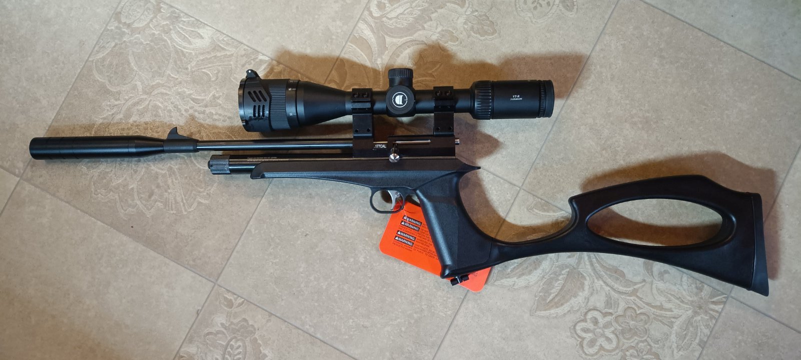 Карабинчик с пистолетным стволом, модер, приклад, 2 барабашки, зип, прицел оптический Discovery 3-12 x 40, кольца на ласту, коробочки и доки.