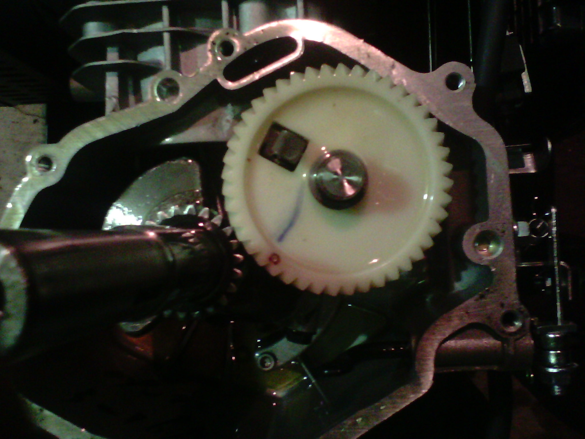 Тогда с какого перепугу в середине шестерни торчит металический вал? Он чё комбинированный?