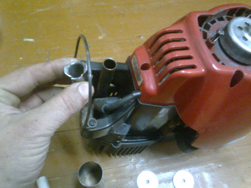 Изготовлены первые детальки и прошла первая примерка по месту, как видно по фоткам кусок трубы (тонкостенная хромированная труба вырезана из "швабры" для пылесоса) с боковым патрубком, в которую станет тонкостенная 16-ка, две крышки и шпилька. Во внутрь между ними плотно набью мочалки для мытья посуды из (нерж. проволоки) . Получится что-то вроде металлической ваты в середине, кроме того есть вариант поэксперементировать с диаметрами и расположением отверстий во внутренней трубке.. Думаю будет глушить (ХОТЬ слегка)...