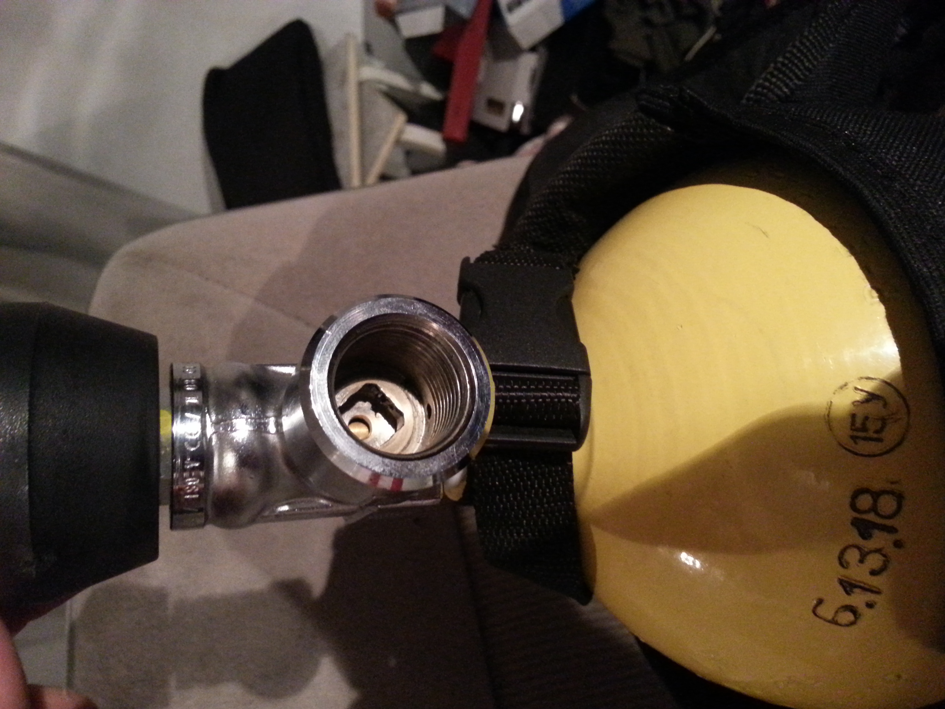 Баллон покупался в этом году, новым, со складского хранения, сразу был осмотрен изнутри специалистами ГДЗС, опрессован вместе с вентилем и оклеймован.