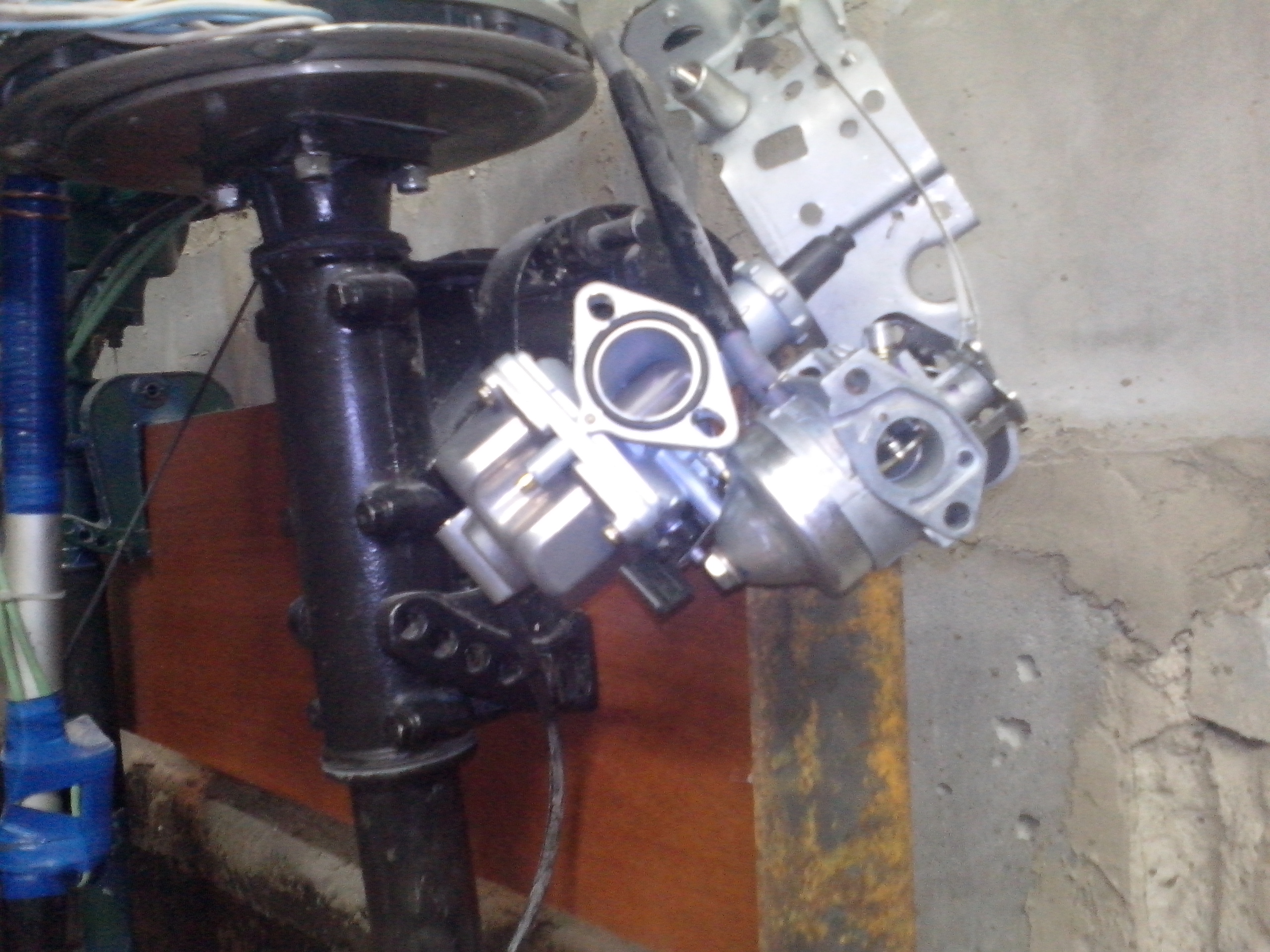 Карб родной. Но пластину привода дросселя я сам делал, была сковырнута, а привод воздушной был оплавлен (пожар был у мотора, походу) и укорочен.