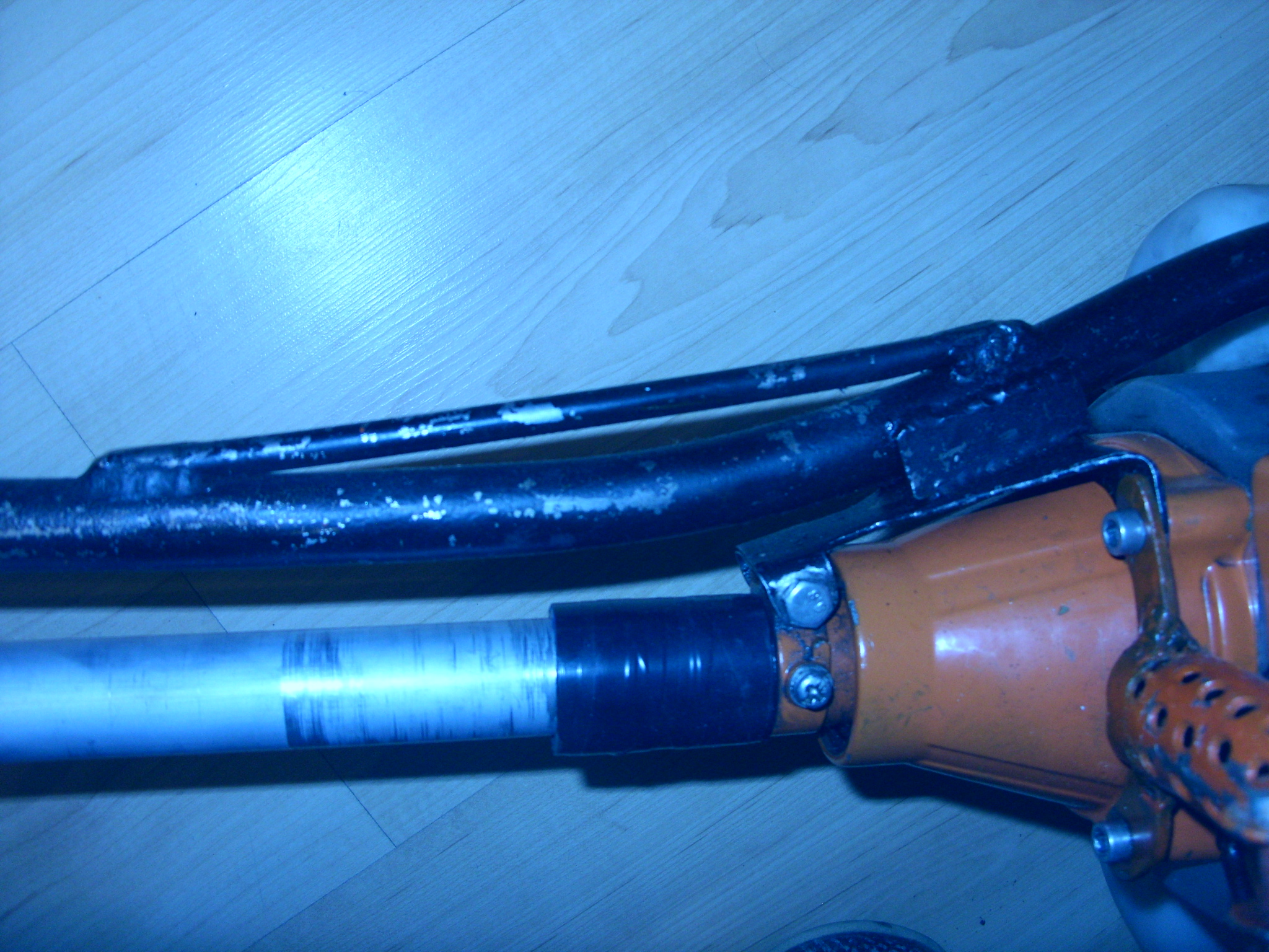 Теперь про установку.Стоит он у меня за бензобачком там есть металлическая пластина защита бачка за нее и прикрепил.Родной глушак снял и трубкой ф18 мм. соединил выхлоп мотора с глушаком